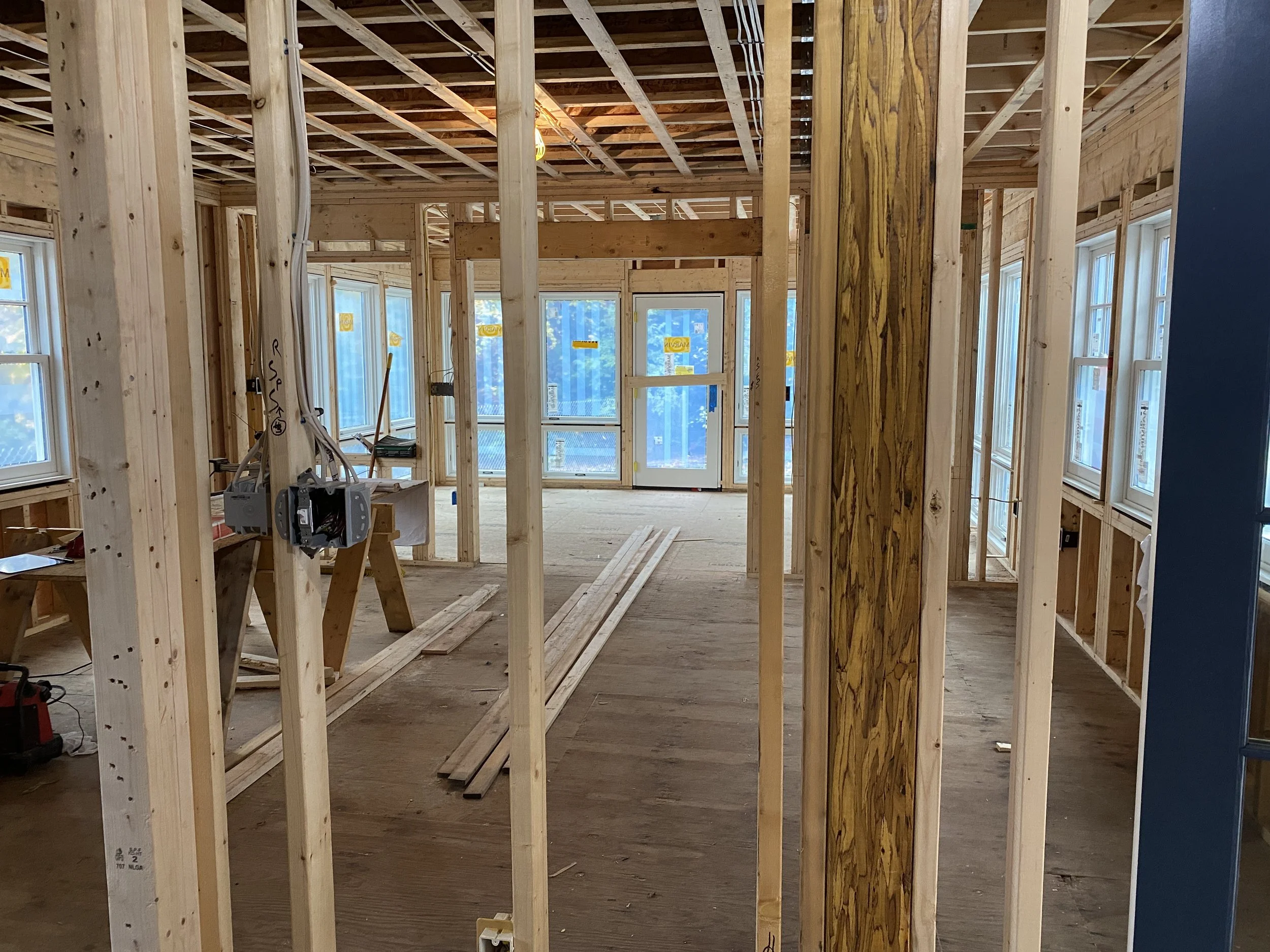 House reframed to support second story in Wellesley. Support beams in place.